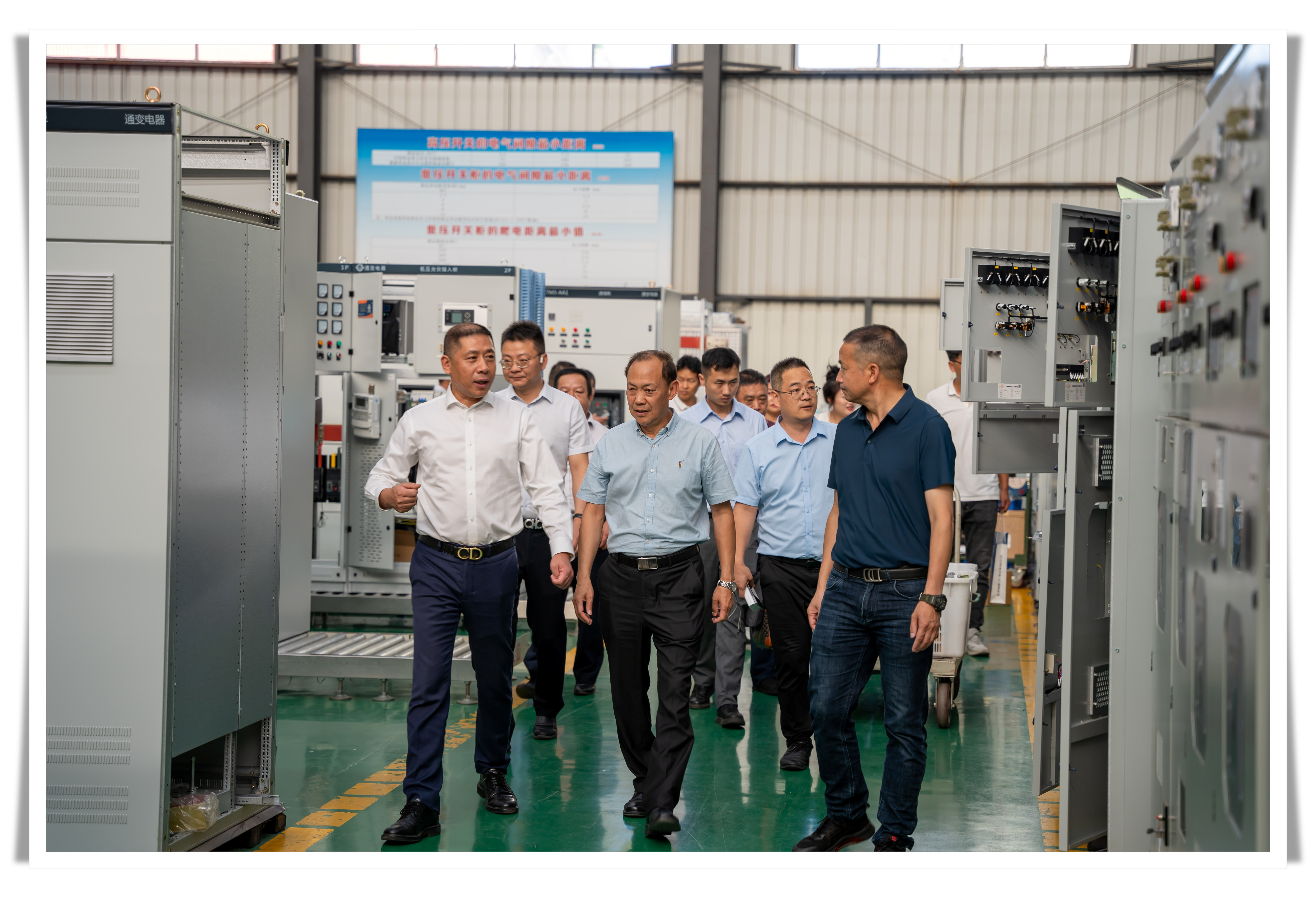 在公司領(lǐng)導(dǎo)的引領(lǐng)下,大家一同探訪了變壓器生產(chǎn)車間、箱式變電站生產(chǎn)車間以及高低壓成套設(shè)備廠,近距離觀看了生產(chǎn)線、及裝配現(xiàn)場(chǎng),聆聽著公司技術(shù)人員對(duì)產(chǎn)品的介紹和講解后,全面了解了公司的生產(chǎn)制造工藝和產(chǎn)品原材料選用,讓大家感受到了工匠精神的傳承。這樣的生產(chǎn)現(xiàn)場(chǎng),不僅展現(xiàn)了通變電器的實(shí)力和技術(shù)水平,更激發(fā)了在座企業(yè)家們對(duì)技術(shù)創(chuàng)新和生產(chǎn)質(zhì)量的追求。